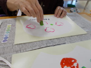 7月に入り 暑い日が増えてきましたね デイでは 暑い夏に向け、うちわを 作成しました(*^▽^*) オクラ、レンコン、ピーマンなどの 野菜を使ってスタンプを作ってみました(^.^) 皆さん思い思いに 押していました それぞれ個性が出た作品となりましたね( *´艸`) 可愛いですね(*^-^*) 自分で作ったうちわ 仰ぐのも楽しみですよね(*^▽^*) 皆さん 熱中症にはお気を付けくださいね(*‘∀‘)