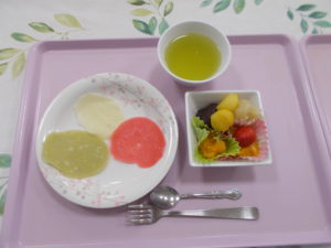 もう4月になりましたね(^^♪ 日に日に暖かくなり着るものも 少しずつ少なくなってきました(*^▽^*) 3月のおやつレクは 三色大福を作りました(*´▽`*) 色んなスイーツを 餅と餡子で包みました( *´艸`) 可愛く出来上がり、皆さん食べるのが 『もったいないね~♪』など言いながら 食べられていました(*^▽^*)