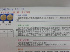 グレープフルーツと飲み合わせのよくない薬にはカルシウム拮抗薬などの血圧を下げる薬があります。他にも高コレステロール血症の薬にもグレープフルーツとの相互作用があります。お薬をもらったときの「薬剤情報提供書」「お薬の説明書」を確認しましょう。