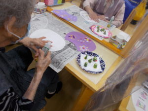 7月に入り ますます暑くなってきましたね 今月の園芸は うちわ作りです(*^▽^*) 夏野菜のオクラでスタンプを作って うちわを作りました(*^^)v 皆さん思い思いにスタンプを押し 可愛いうちわが出来上がりました!(^^)! 涼しい風で 暑い夏を乗り切りましょう(#^.^#)