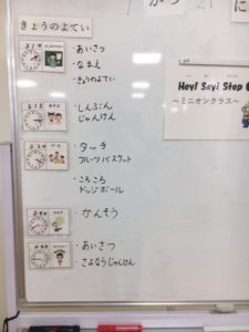 全てのクラスで、このようにホワイトボードにスケジュールを書いて、何をするのかをわかりやすくしています。