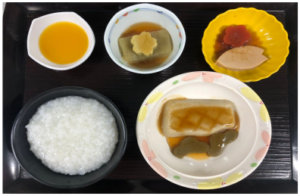 当院では、食材をミキサーにかけたものに味付けしゼリー剤で固めるため、