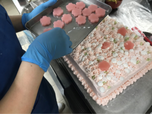 また、4月生まれということで満開の桜をイメージし、ピンク色のクリームやようかんを桜に見立てました。