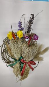 すすきを束ね、フクロウに見立てて作品にしました。ふくろうの ‘ぷっくり‘ した感じがでていると思いませんか(^^)?