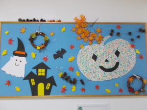 今月の壁画です(*´▽`*) 利用者様が作成してくれました(^^♪ 可愛いリスさんたちが秋の森で 遊んでいます( *´艸`) エレベーター前は ハロウィンの壁画です(*´▽`*) 可愛いお化けが利用者様を お出迎えしてくれます(*^。^*) 毎月利用者様が協力してくれています(*^^)v 12月壁画も楽しみですね(*^▽^*)